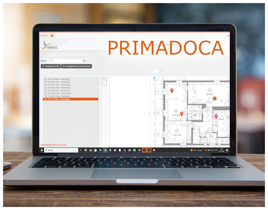 Mit der Planverortung in PRIMADOCA sparen Sie wertvolle Zeit und optimieren Ihre Abläufe durch eine zentrale Verwaltung aller Pläne und Informationen. Die direkte Verknüpfung von Aufgaben und Dokumenten beschleunigt die Zusammenarbeit und minimiert Fehlerquellen. Für die Nutzung ist eine PRIMADOCA-Lizenz erforderlich.